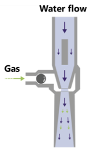 An aspirator performs gas suction and exhaust through the flow of water. Since the vacuum level achievable with an aspirator depends on the vapor pressure of water, it varies according to the water temperature. For example, at a water temperature of 20°C, a vacuum level of 23.7hPa can be obtained.